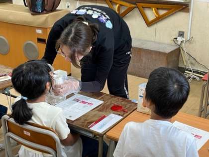 9月21日(木)3時間目、2年2組は歯みがき指導で、葉を赤く染めていました。このあとうがいをしてどれだけ赤い色が残っているかで歯みがきがきちんとできているかどうかがわかりますね。