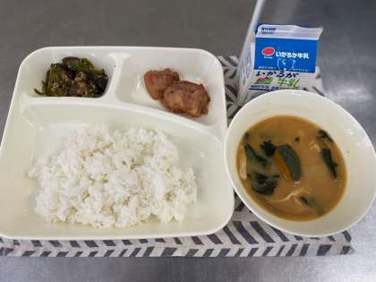 今日はかぼちゃのみそ汁でした。日本でよく食べられているのは西洋かぼちゃという種類で、主な産地は、北海道や鹿児島県・長野県・茨城県です。今日は北海道産のものでした。やわらかくて甘い、おいしいかぼちゃでした。