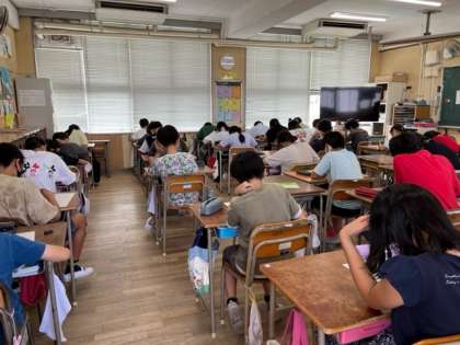 9月25日(月)5時間目、6年2組は算数のテストをしていました。