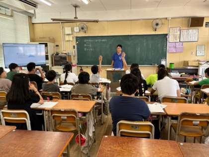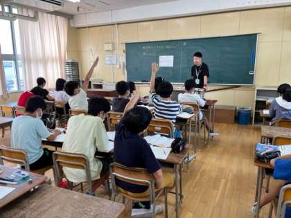 9月27日(水)1時間目、6年1組は算数で方眼なしで、拡大図と縮図をかく方法を考えていました。学級を2分割にして少人数で学習していました。