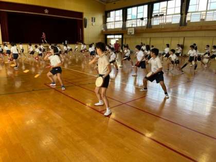 9月27日(水)1時間目、5年は体育でエイサーの細かい動きを練習していました。
