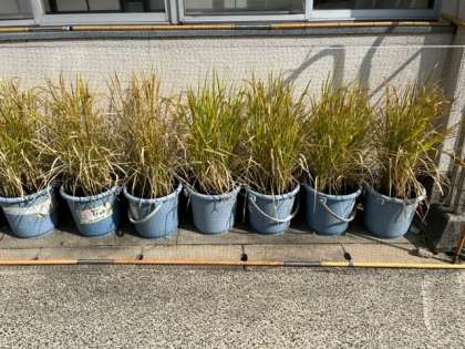 9月27日(水)5年生が栽培している稲が大きく育ち、稲穂にびっしりと米ができてきています。