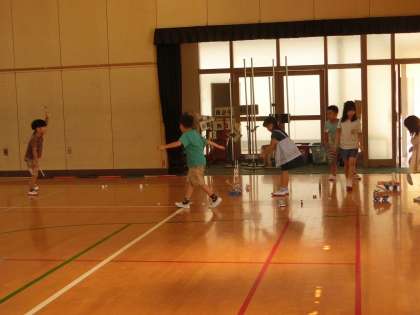 9月27日(水)3・4時間目、講堂で2年生が1年生を招待しておもちゃランドを開きました。2年生が作ったおもちゃで1年生が楽しんでいました。2年生はじょうずに1年生にルール説明等できたでしょうか。