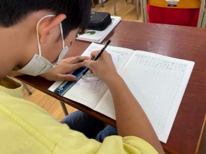 9月28日(木)1時間目、6年1組は算数で四角形の拡大図と縮図のかき方を学習していました。