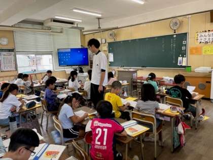 10月2日(月)1時間目、3年2組は国語で「サーカスのライオン」の各場面で心に残ったところとその理由をワークシートに書いていました。