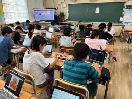 10月2日(月)1時間目、5年1組は総合で沖縄の文化やくらしについて調べ新聞を作っていました。さらにパワーポイントでもまとめていました。