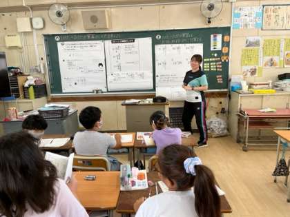 10月2日(月)3時間目、4年は算数で習熟度別に分かれて学習していました。2けた÷2ケタのわり算の学習をしていました。