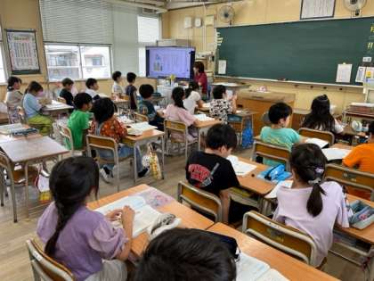 10月4日(水)3時間目、3年1組は国語で主語と述語、さらにくわしく表す言葉を学習していました。