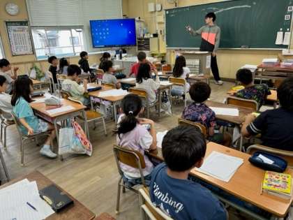 10月5日(木)1時間目、3年2組は明日の社会見学の確認をしていました。