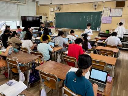 10月5日(木)1時間目、6年1組は国語で「海の命」のキャッチコピーを考え、それに合う挿し絵をパソコンで探していました。