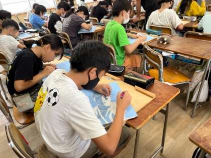 10月5日(木)4時間目、6年2組は図工で版画を彫っていました。