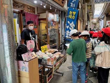 10月6日(金)4時間目、3年2組は総合で粉浜商店街へ探検に行きました。気が付いたことをどんどん記録していました。
