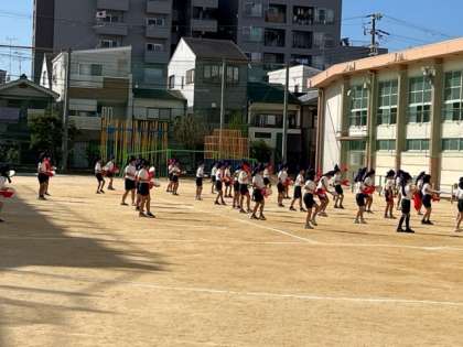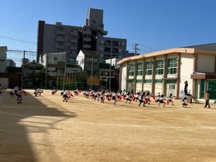 10月11日(水)5時間目、5年はエイサーの基本練習から始めていました。だんだん気持ちが入っていく様子が見えました。