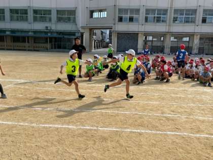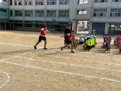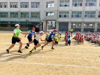 10月12日(木)5時間目、6年は体育でリレーの練習をしていました。スピードに乗ってバトンパスをしていました。