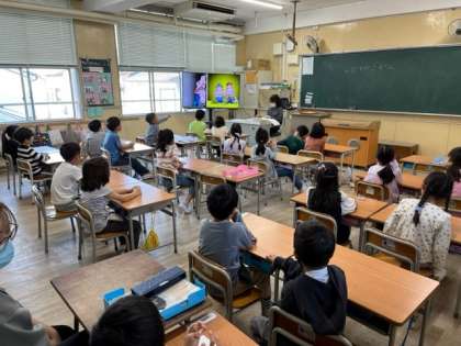 10月16日(月)1時間目、1年1組は「おむすびころりん」のお話をNHKの動画で見ていました。