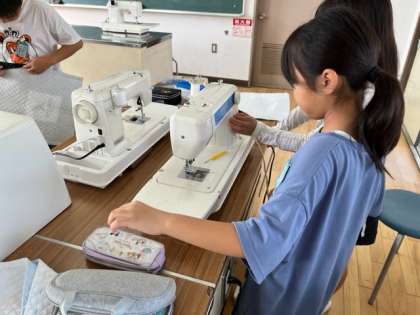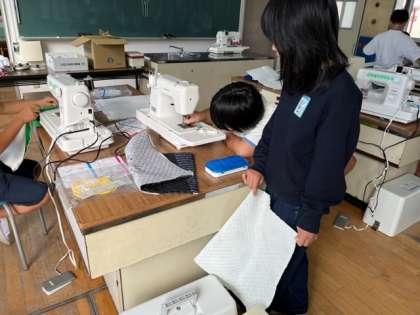 10月16日(月)1時間目、5年2組は家庭科でナップサック作りをしていました。ミシンの糸通しに苦戦している様子でした。