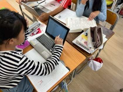 10月18日(水)2時間目、4年1組は国語で「ごんぎつね」の言葉の意味調べをしていました。辞書を使う人とパソコンを使う人がいました。