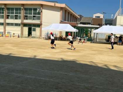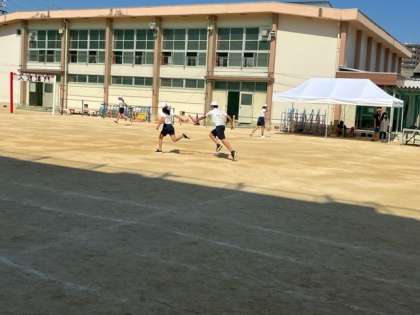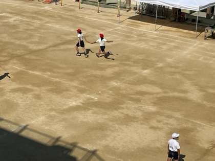 10月18日(水)3時間目、6年は体育でバトンパスの練習を繰り返ししていました。