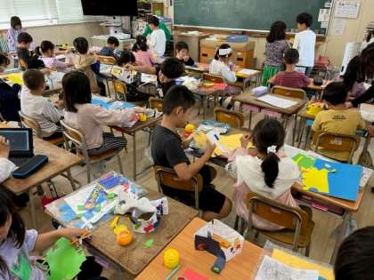 10月24日(火)2時間目、2年2組は図工で冠を作っていました。