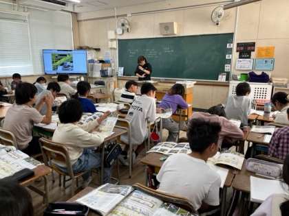 10月24日(火)3時間目、5年2組は社会科で自動車の組み立て工場について学習していました。
