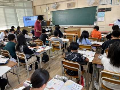 10月25日(水)1時間目、5年1組は社会科で自動車工業について学習していました。自動車工場や関連工場での「ジャスト・イン・タイム」という考え方について調べていました。