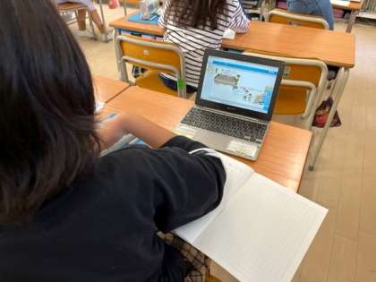 10月26日(木)1時間目、4年2組は算数で絵から問題を作り計算をしていました。