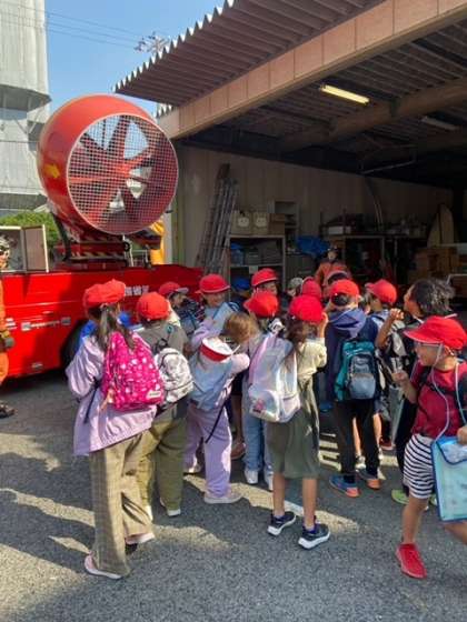 大型ブロワー車は大阪市では住之江消防署にしかないそうです。風を何に使うのでしょうか?3年生に聞いてみてください。