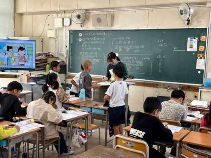 10月30日(月)1時間目、4年1組は算数で1つの式に表す方法を考えていました。