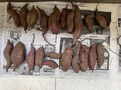 10月30日(月)2年生が過日いもほりをして収穫したさつまいもを廊下で乾燥させています。今年は、大豊作でした。写真はその一部です。