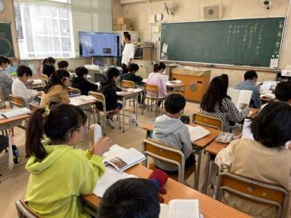 11月2日(火)1時間目、4年2組は国語で「くらしの中の和と洋」を学習していました。