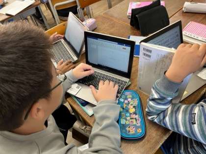 11月2日(木)1時間目、5年1組は国語で和の文化を受けつぐものを調べ、パワーポイントでまとめていました。何を調べているのかを聞くと「うどん」という人がいました。