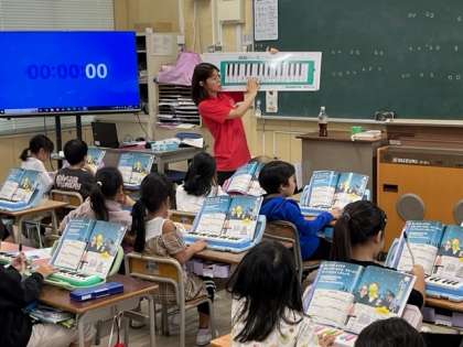11月6日(月)2時間目、1年2組は音楽で「きらきらぼし」を鍵盤ハーモニカで練習していました。