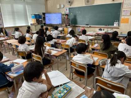 11月7日(火)2時間目、2年1組は算数で九九を使って解く問題を考えていました。