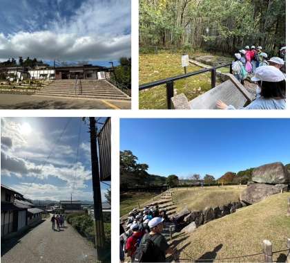 今日は6年生が飛鳥へ遠足に行きました。歴史的な寺や石造物、古墳を見学したり広場で遊んだりしました。最高の秋晴れで子どもたちは思いきり楽しんでいました。