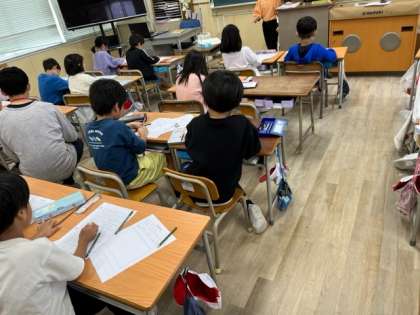 11月9日(木)1時間目、1年2組は昨日の遠足のことを「みつけたよ」カードに書いていました。