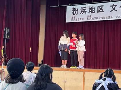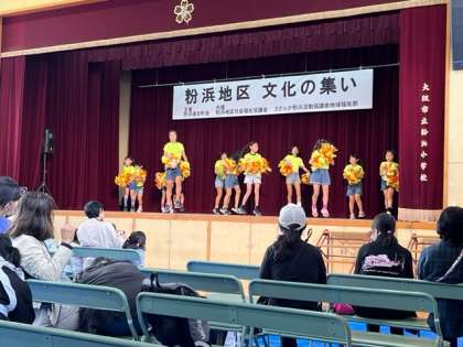11月11日(土)粉浜小学校体育館で粉浜地区文化の集いが行われました。児童会代表があいさつをし、子ども会文化部が元気なダンスを披露しました。