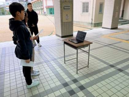 11月13日(月)児童朝会で子ども会サッカー部の表彰を行いました。児童会からは共同募金のお礼と「きまりを守ろう週間」のお話がありました。雨がぱらついていたので、久しぶりにリモートで朝会を行いました。