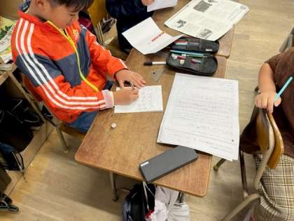 11月13日(月)1時間目、3年2組は国語で「パラリンピックが目指すもの」を学習していました。パラリンピックのガイドブックを作っていました。