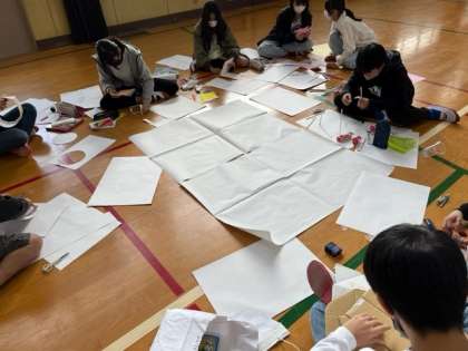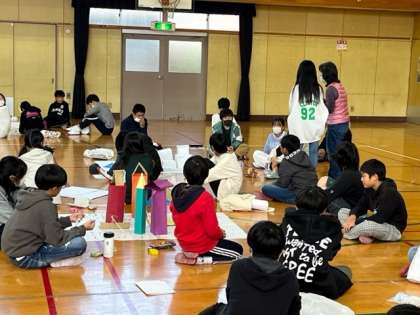 11月13日(月)5・6時間目、6年は「ユメのイエ・ユメのマチ」の学習をしました。大阪府住まい・まちづくり教育普及協議会の方にお越しいただき、11月6日に考えた家や町の模型を作っていきました。班で協力して建物や町に必要な物を作っていきます。