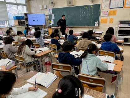 11月15日(水)4時間目、2年1組は生活科で葉書の宛名のかき方を練習していました。