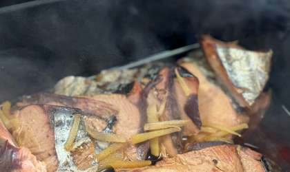 なまりぶしは、かつおの身を蒸した後に干して作られます。