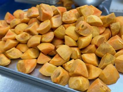 富有柿は、日本で一番多く生産されている柿の品種です。11月〜12月に旬を迎えます。