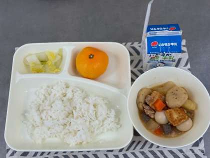 今日の給食は、寒い日にぴったりの関東煮でした。