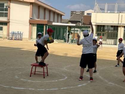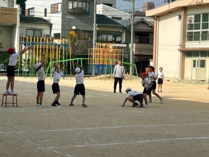 11月24日(金)3時間目、4年1組は体育でポートボールをしていました。ずいぶんパスが回るようになってきたようです。