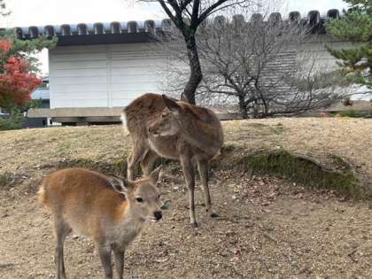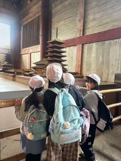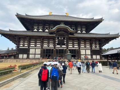 奈良公園に到着し大仏殿に向かっています。