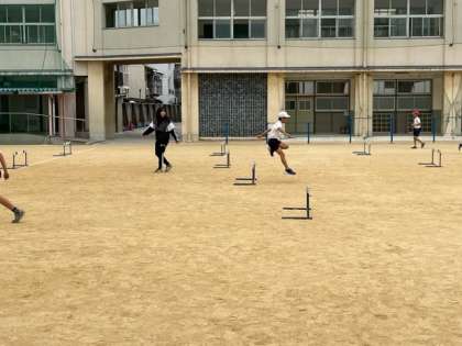 11月27日(月)5時間目、5年2組は体育でハードル走をしていました。
