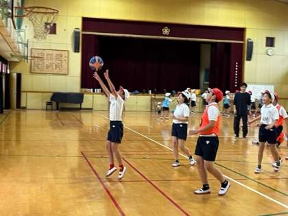 11月27日(月)5時間目、5年1組は体育でバスケットボールの試合をしていました。