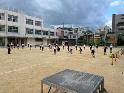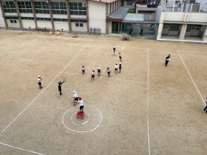 11月28日(火)1時間目、4年1組は体育でなわとびの後ポートボールをしていました。