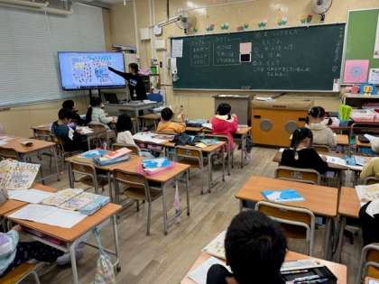 11月28日(火)1時間目、1年2組は算数で「たすのかな ひくのかな」を学習していました。文章から「たす」か「ひく」かを考えて問題を解いていました。