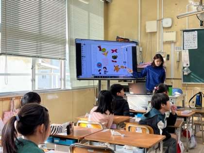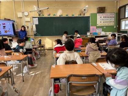 11月2年2組は国語で9日(水)1時間目、1年2組は国語で「なにに 見えるかな」を学習していました。二人組で何に見えるかを尋ねて、答えていました。